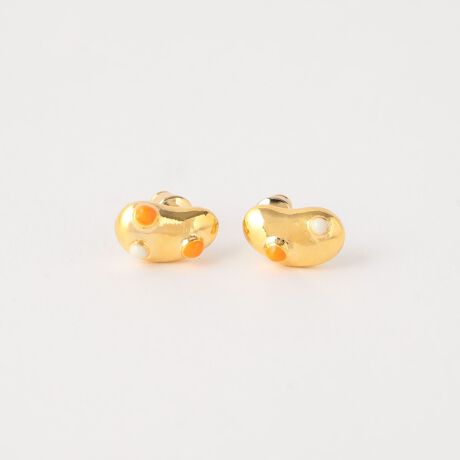 ビーン型のベースにカラードットをアシンメトリーに施したピアス。