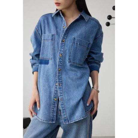 ■AZUL DENIM デニムシャツ■ポイント加工感が目を引くデニム素材のオーバーシャツ。■ディティールヴィンテージライクなポケット部分の加工と後ろのスリットがデザインポイントです。程よい肉感と柔らかさを併せもつデニムは、ライトアウター感覚で羽織って頂けます。■スタイリング程よいゆとりのオーバーシャツなので、すっきりとしたナロースカートやショートボトムなどを合わせたメリハリのある着こなしがおすすめ。デニムボトムを合わせたセットアップ風の着こなしも◎。■生地9.5ozノンストレッチデニムを使用。透け感:なし裏 地:なし伸縮性:なし光沢感:なし