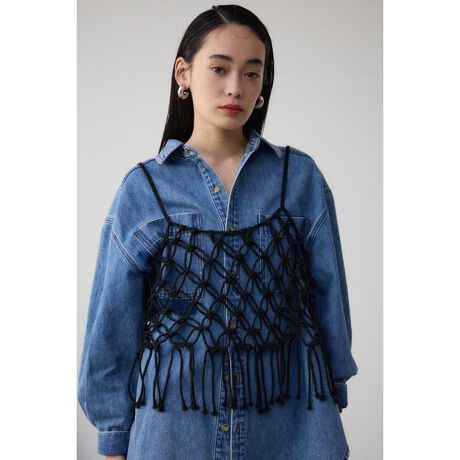 ■マクラメキャミソール■ポイントレイヤードスタイルにぴったりなマクラメ編みのキャミソール。■ディティールインナーとのバランスが取りやすい程良くコンパクトな丈感と、動きのある裾のフリンジがポイントです。■スタイリングTシャツやプリントトップスと合わせてこなれ感のあるカジュアルスタイルに。シャツなどきれいめのアイテムと合わせて、外しに使うのもおすすめです。■生地さらりとした肌触りの良い綿混素材を使用。ハンドメイドならではのナチュラルな表情が魅力。風合いやサイズ等が1点1点異なります。透け感:なし裏 地:なし伸縮性:あり光沢感:なし