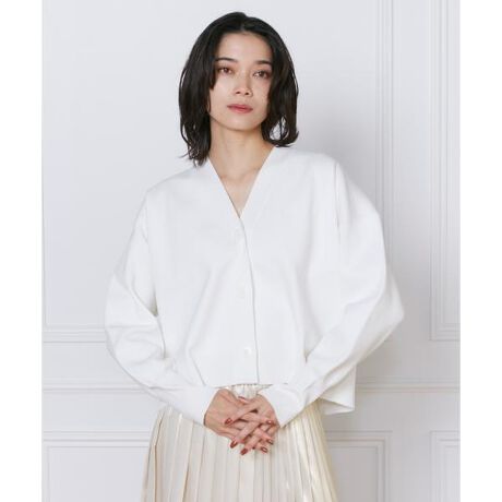 綿ポリエステルのスムース編みで、きれい見えする表情とほどよい厚み、ハリ感が特徴的なカーディガンです。袖はドロップショルダーで抜け感を演出。丈をコンパクトに設定する事で、パンツにもボリュームのあるスカートにも合わせやすく、こなれ感のあるスタイリングに仕上げてくれます。・水洗い可■サンプル撮影商品■こちらの商品はサンプルでの撮影となっております。実際の商品とは、サイズや色味、素材、デザイン等の仕様が若干変更になる場合がございます。