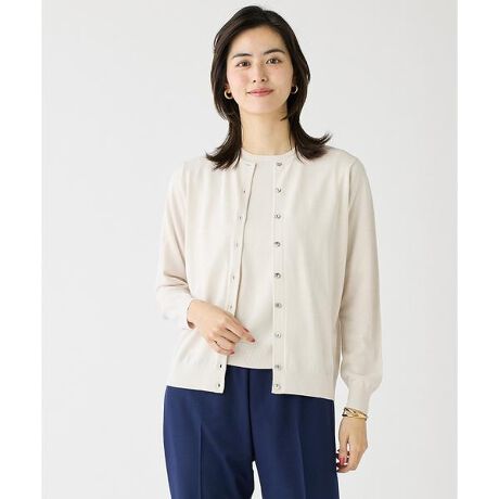 定番のクルーネックカーディガンと半袖クルーネックプルオーバーのアンサンブルニットです。カーディガンは飽きのこないデザインなので夏場の羽織りとしても活用できます。インナーは全面にストレッチ糸を一緒に編んでいる為、透け防止効果や型崩れがしにくく初夏まで長く愛用して頂けます。カーディガンとインナーは別々でもお使い頂けるのでさまざまなコーディネートが楽しめます。・水洗い可■素材■《SMART ICE(スマートアイス)》汗を拡散させるため、いつもさわやかな着心地で、肌に触れるとひんやり涼しく感じるドライタッチ素材です。繰り返しの洗濯でも紫外線遮蔽効果が持続します。インナーには、特殊紡績技術を駆使し、ナノ粒子の接触冷感セラミックを練り込むことで熱伝導性を向上させた接触冷感機能を持つナイロン素材を一緒に編みこんでいる為、快適性に優れています。■サンプル撮影商品■こちらの商品はサンプルでの撮影となっております。実際の商品とは、サイズや色味、素材、デザイン等の仕様が若干変更になる場合がございます。