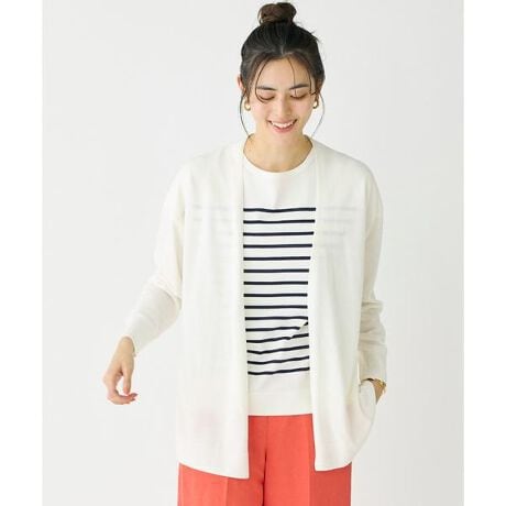 ロングカーディガンとフレンチスリーブのプルオーバーのアンサンブルニット。カーディガンは、風になびく素材感が女性らしい印象の一枚です。また、紫外線遮蔽効果が持続する素材の為、夏場の羽織りとしても活用していただけます。フレンチスリーブのインナーはほどよく肩周りをカバーし、ゆったりしたシルエットなので一枚でも着ていただけます。・裏地なし・水洗い可■素材■《SMART ICE(スマートアイス)》汗を拡散させるため、いつもさわやかな着心地で、肌に触れるとひんやり涼しく感じるドライタッチ素材です。繰り返しの洗濯でも紫外線遮蔽効果が持続します。インナーには、特殊紡績技術を駆使し、ナノ粒子の接触冷感セラミックを練り込むことで熱伝導性を向上させた接触冷感機能を持つナイロン素材を一緒に編みこんでいる為、快適性に優れています。■サンプル撮影商品■こちらの商品はサンプルでの撮影となっております。実際の商品とは、サイズや色味、素材、デザイン等の仕様が若干変更になる場合がございます。