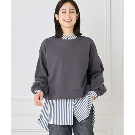 カジュアルに見えがちなプルオーバーを袖口と身頃にボリューム感を持たせ、女性らしく見せた1枚。ドロップショルダーがボディを華奢に見せ、たっぷりとしたパフスリーブが気になる二の腕をカバーしてくれます。長めの袖丈が袖口にたまり、ほんのりボリューム袖になるよう拘りました。引手にグログランテープを付けた後ろ身頃のファスナーもポイントです。・水洗い可・後ろファスナーあり■素材■細かなブークレーで表情感を出したダンボール素材です。フラットな見え方が多いダブルニットの表糸にブークレー糸を使用することで表情豊かに仕上げました。裏面がポリエステルなので滑らかできれいな仕上がりになっています。適度なストレッチで動きやすく、また、素材が持つ適度なハリ感は、立体的なシルエットを作りやすく、体のラインも拾いにくいのでストレス無くご着用いただけます。■サンプル撮影商品■こちらの商品はサンプルでの撮影となっております。実際の商品とは、サイズや色味、素材、デザイン等の仕様が若干変更になる場合がございます。同素材のスカート品番:10-51195016