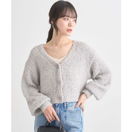 ふんわりとしたリリーヤーンの優しい雰囲気が魅力的なカーディガン。ラメ糸を覗かせて華やかさをプラスしたトレンドライクな一枚です。コンパクトなボディにリブでキュッと絞ったボリュームある袖が旬バランス。シンプルボトムにオンするだけで一気に存在感のあるスタイリングが完成する今季おすすめのアイテムです。
