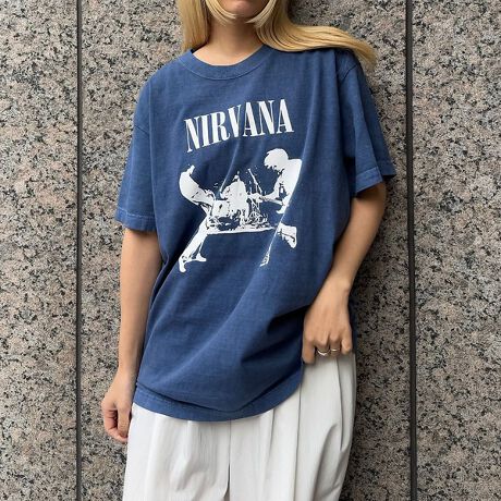 ヴィンテージライクな風合いが魅力のNIRVANA公式グラフィックTシャツ。