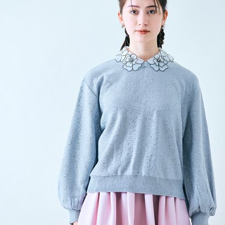 ・ふんわりと柔らかいシルエットに、きらりと光るスパンコールを編み込んだ大人レディな装いを演出するニットプルオーバー。