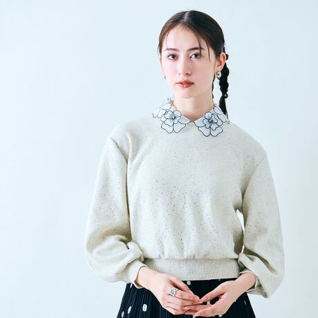 ・ふんわりと柔らかいシルエットに、きらりと光るスパンコールを編み込んだ大人レディな装いを演出するニットプルオーバー。