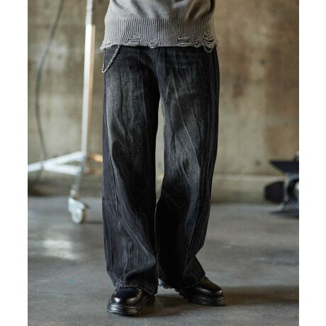 ヴィンテージライクな風合いに、加工を施した個性的な表情が目を惹くデニムパンツ。ブリーチやウォッシュ加工、オーバーダイなどカラーによってもガラッと印象の変わるアイテムに仕上げました。合わせるだけでコーデの主役になる、着こなしに新鮮さを与えてくれる一本。形はベーシックなワイドストレートデニムなので、どんなアイテムとも馴染みます。