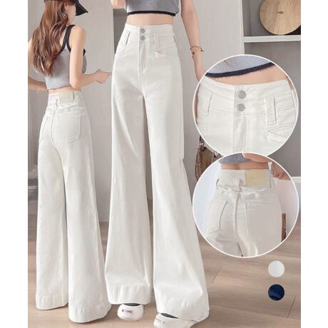 裾に向かってゆるやかに広がるワイドシルエットが、脚をスラっと美しく見せるデニムパンツ
