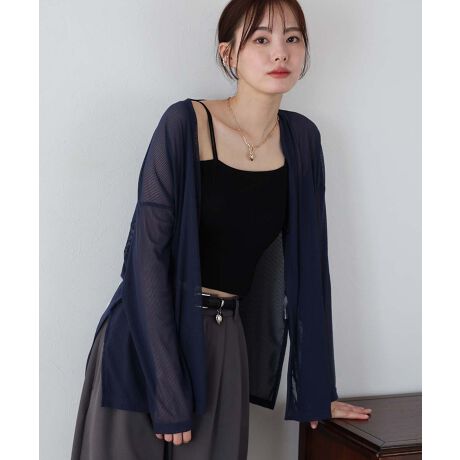 トレンド感のある「透け」を楽しむスタイリングが出来るカーディガン。