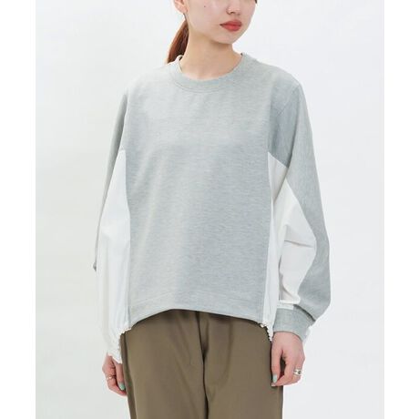 異素材ミックスの変形ドルマンスリーブプルオーバーです。