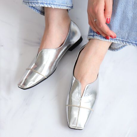 ・履き口のVカットとアウトステッチがポイント。モードに履けるフラットシューズです。