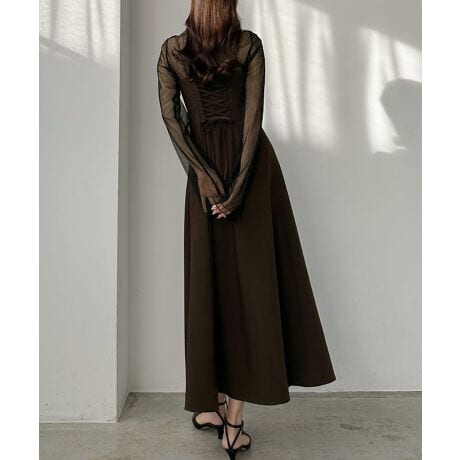 Louere バックレースアップフレアキャミワンピース