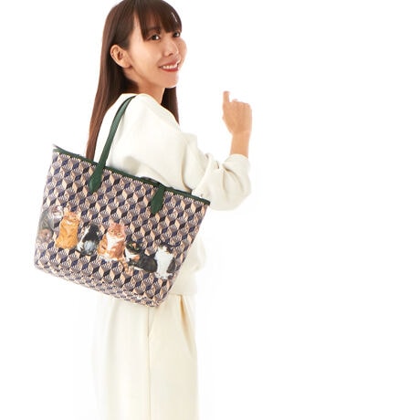 マンハッタナーズオリジナルモノグラムの上に猫たちをちりばめたバッグシリーズ。