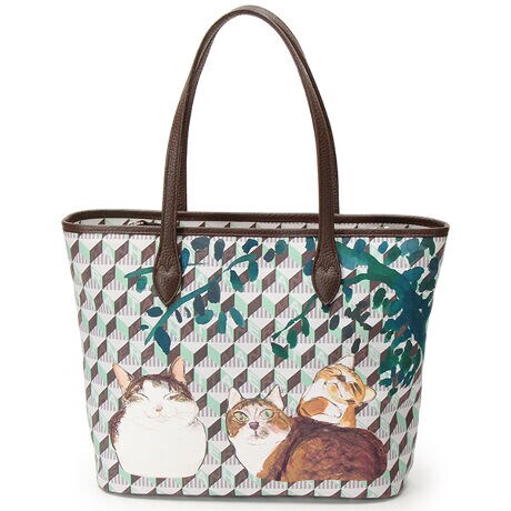 マンハッタナーズオリジナルモノグラムの上に猫たちをちりばめたバッグシリーズ。