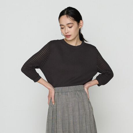 身頃はストライプ状の細かいタック柄が入った総針組織ですっきりと仕上げています。