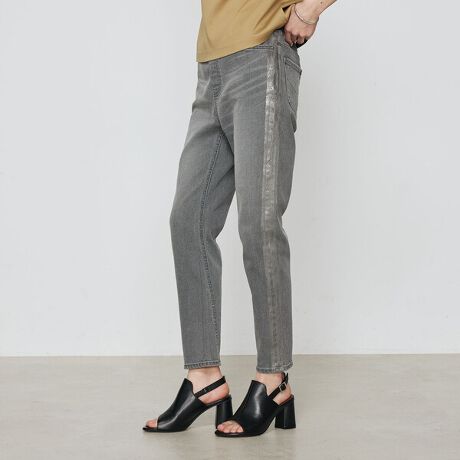 04:グレー…上品でシャープな印象箔プリント・サイドラインで穿くだけでスタイリングがきまります。