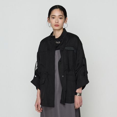 〔 TALLサイズ 〕 テンセルリネンサテン ミリタリー調シャツブルゾン