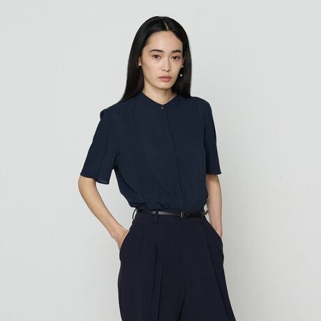 細めのバンドカラーが首元をすっきりと見せてくれます。