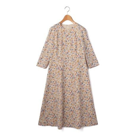 華やかな小花柄が印象的なデザインの7分袖ワンピース。ゆとりのあるシルエットに裾に向かってフレアに広がるドレープ感が美しくフェミニンなデザインポイント。シンプルなフロントのバックジップ仕様。品のあるレディな膝下ミモレ丈も特徴。一枚でおしゃれなお出かけコーディネートが完成するアイテムです。