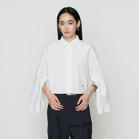コムサらしいクリーンなトラッドを表現するアイコンとなるクロップドシャツです。