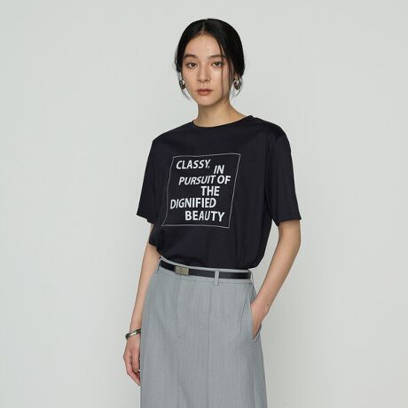 シロ地にクロプリント、サックスにシロプリントで爽やかに、クロにグレープリントでモードに着られます。