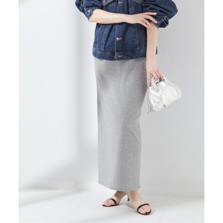 ストレッチ性のある素材で膝などが出にくいイージーケアのニットスカート。