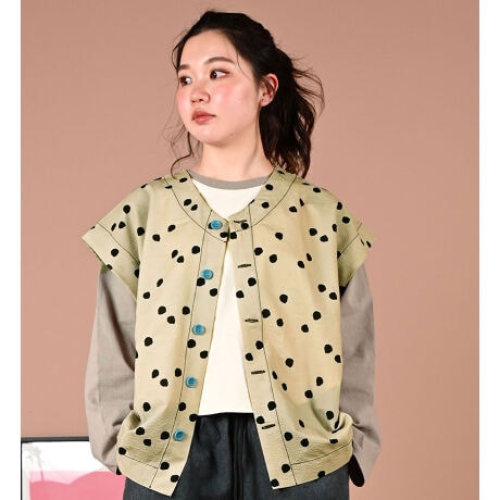 羽織りとしても、ボタンを留めてトップスとしても使えます。