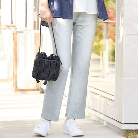 イージーな穿き心地でデニム見えする、大人のカジュアルコーデにピッタリのパンツです。