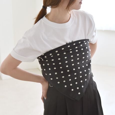 首元や頭に巻いたりバッグにプラスしたり、薄手のトップスの上に巻いてビスチェのように使うのもオススメです。