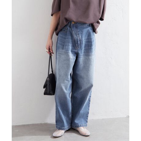 しっかりとした肉感のあるコットン100のデニム素材。タックを入れてボリューム感を出した太めのコクーンシルエット。デザイン性を持たせながらしっかりと本格的な加工を施し、シンプルなトップスを合わせても決まります。