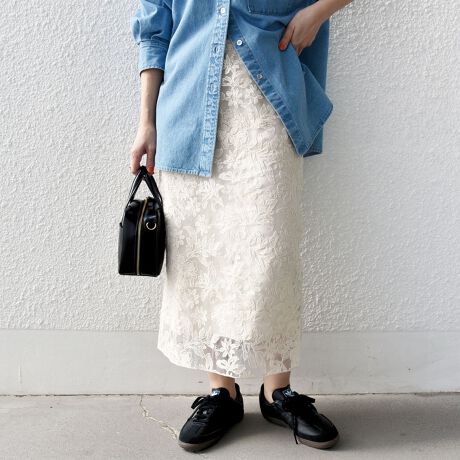 ほどよいギャザー分量と裾の始末を軽やかに仕上げることで、カジュアルさをプラスしたオンオフ両シーンで使えるエンブロイダリースカート。