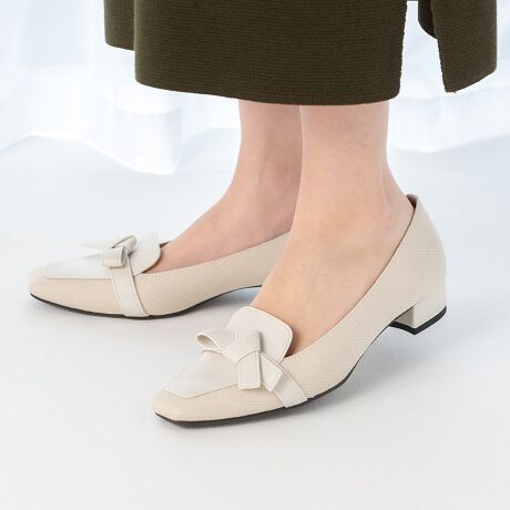 【25春夏新作】マテリアルコンビノットリボンローファーパンプス