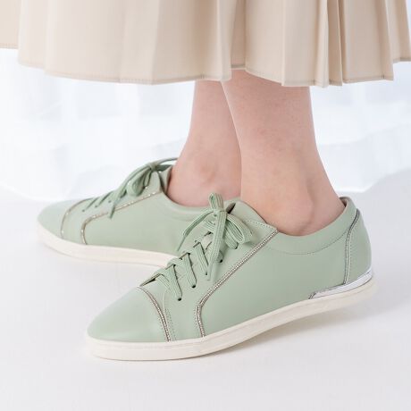 【25春夏新作】ビジューラインレースアップスニーカー