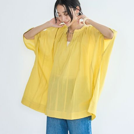ゆったりシルエットでも軽やかなチュニックブラウス
