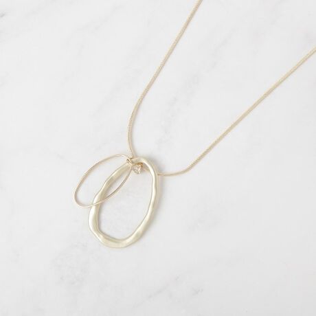 2連のモチーフに小さなビジューパーツを施した、印象的なネックレス。