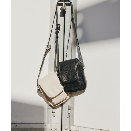 「ぷっくり」としたシルエットとZIPがアクセントになっているフラップミニショルダーバッグ。