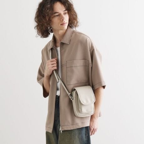 「ぷっくり」としたシルエットとZIPがアクセントになっているフラップミニショルダーバッグ。