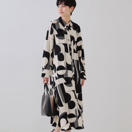 オリジナルジオメトリックプリントのシャツワンピース