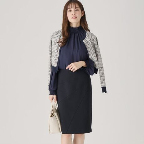 ストレッチ入りのポンチ素材を使い、着心地が良いです。