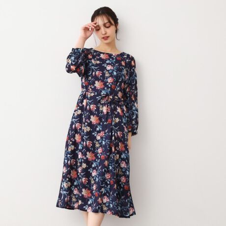 【洗える/同柄アイテムあり】ローザリンド柄 シフォンワンピース