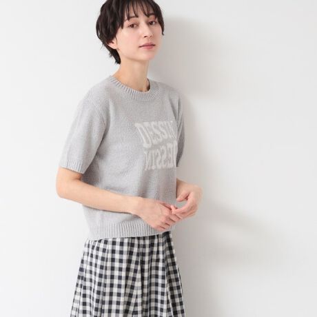 身頃のブークレ糸とロゴに入ったほのかなラメのコントラストがカジュアルなニットです。