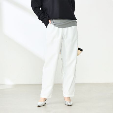 ・フロントタック入りで、腰周りに程よいゆとりを持たせつつ、裾に向かって緩やかに細くなるテーパードシルエット