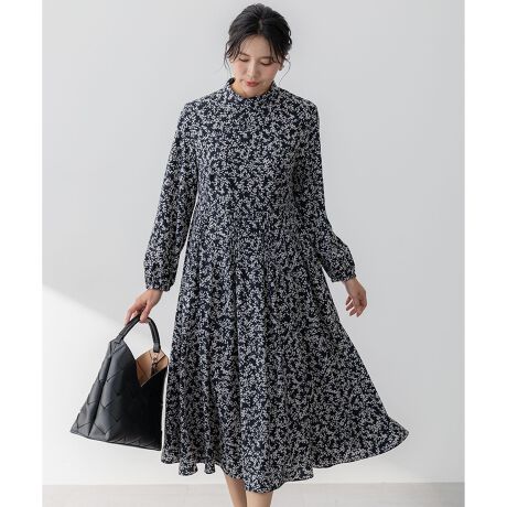 オリジナルのシャドーリーフ柄は、繊細で可愛らしい小ぶりのリーフが重なり合ったような構成で、動きのあるランダム感が表現されています。腰回りにピンタックをふんだんに施すことで、ウエストから裾にかけて広がるAラインシルエット。