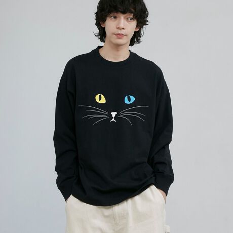オッドアイのキャットフェイスをプリントしたロングスリーブTシャツ。