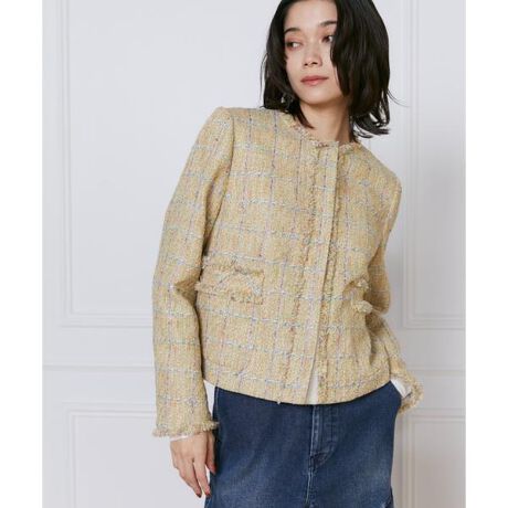 やや短めのコンパクトなフォルムと高めの位置に配したポケットですっきりとしたバランスの一着。襟まわりや袖口、ポケットのフリンジディテールでアクセントをつけています。明るく華やかな着こなしが決り、エレガントスタイルだけでなく、デニムやTシャツなどを合わせてカジュアルダウンした着こなしもおすすめです。コーディネートをシックかつ上品な印象にしてくれる存在感抜群のアイテムです。・裏地あり・ポケットあり 《Lanificico Campore》イタリア・ビエラにて1830年創業。紳士スーツ用の高品質な毛織物で世界的に知られる老舗テキスタイルメーカーです。ビジネススーツ用のプレーンなウールやクラシカルなツイードはもちろん、意匠糸を用いた華やかなファンシーツイードやジャカード地など伝統的な毛織物にちょっと遊び心を加えた、若々しいコレクションを毎シーズン発表しています。■サンプル撮影商品■こちらの商品はサンプルでの撮影となっております。実際の商品とは、サイズや色味、素材、デザイン等の仕様が若干変更になる場合がございます。