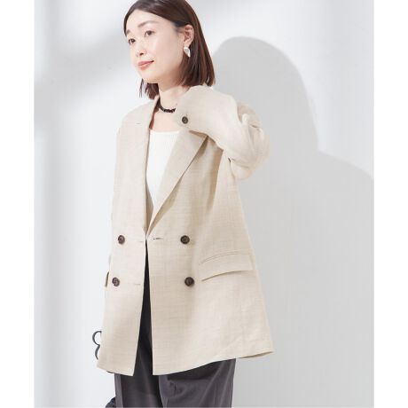 かっちりし過ぎず、ややカジュアル感のある素材を使用した、ダブルボタンジャケット。