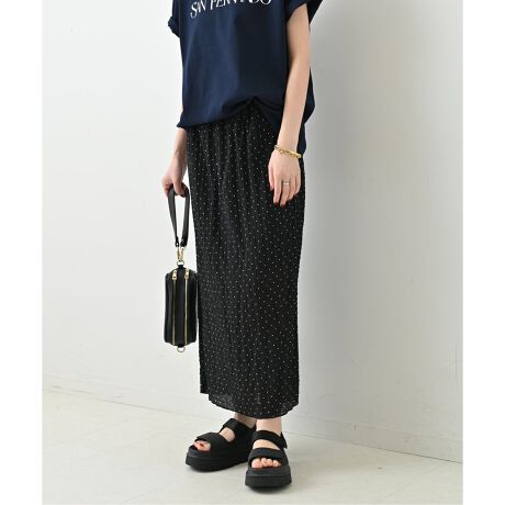 スタイリングのポイントになる細かいドット柄のスカート。
