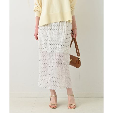 スタイリングのポイントになる細かいドット柄のスカート。