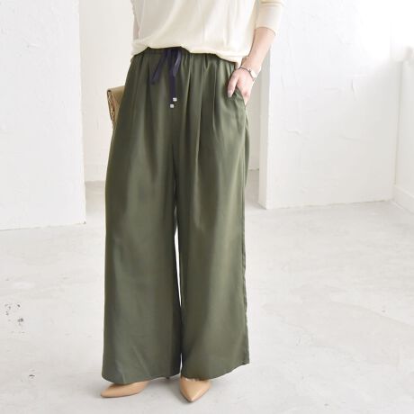 通勤コーデにもマッチするゆったりとしたシルエットワイドパンツ。